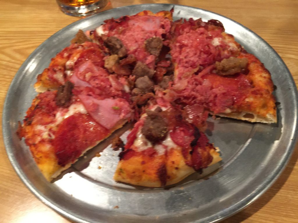 We ordered two pizzas. The first was a build-your-own. We got a small pizza and added pepperoni and soppressata. The soppressata added a wonderful flavor to the pizza. The crust was just a little thicker than we usually like, but it was cooked well; browned nicely, didn’t flop when picked up, and had a nice chew.